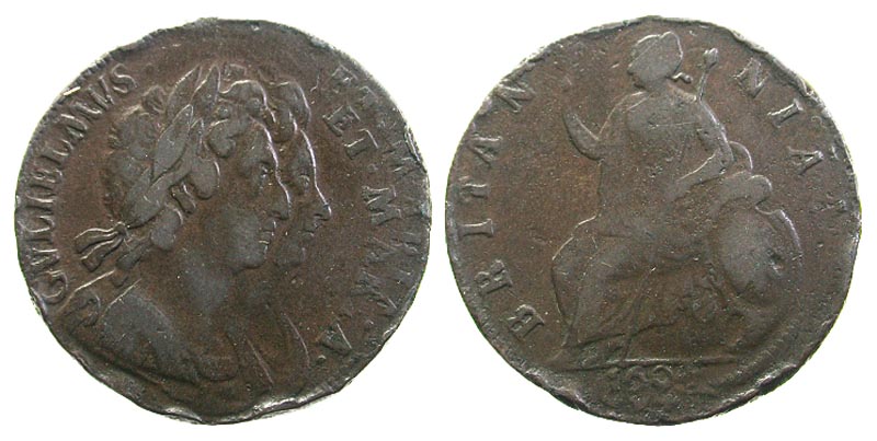 Lot 5-248. British, House of Orange. William III and Mary. 1688-1694. Æ half penny. London, 1694.