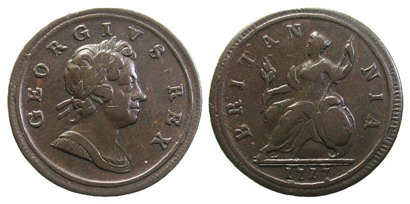 Lot 5-250. British, House of Hanover. George I. 1714-1727. Æ half penny. Tower mint, 1717. "Dump Issue".