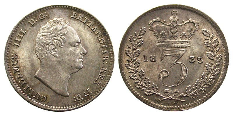 Lot 5-251. British, House of Hanover. William IV. 1830-1837. AR threepence. 1837. Ex DNW 79/3269, G F Snelling, bought MS Millwood 6/67.