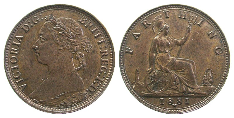 Lot 5-253. British, House of Hanover. Victoria. 1837-1901. Æ farthing. 1881.