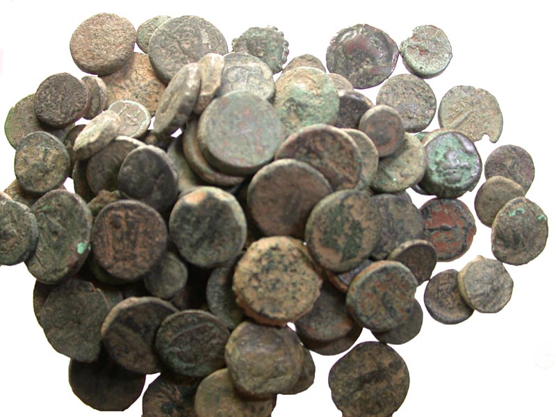 Lot of 100 Uncleaned Greek Bronze Coins. An assortment of types. Average Fine condition. A nice group of mostly Asia Minor and Seleukid types.