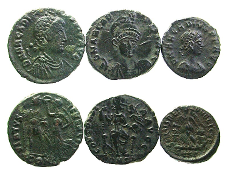 Lot of 3 Bronze Coins of Arcadius. Different types and mints. Average Fine - VF condition.