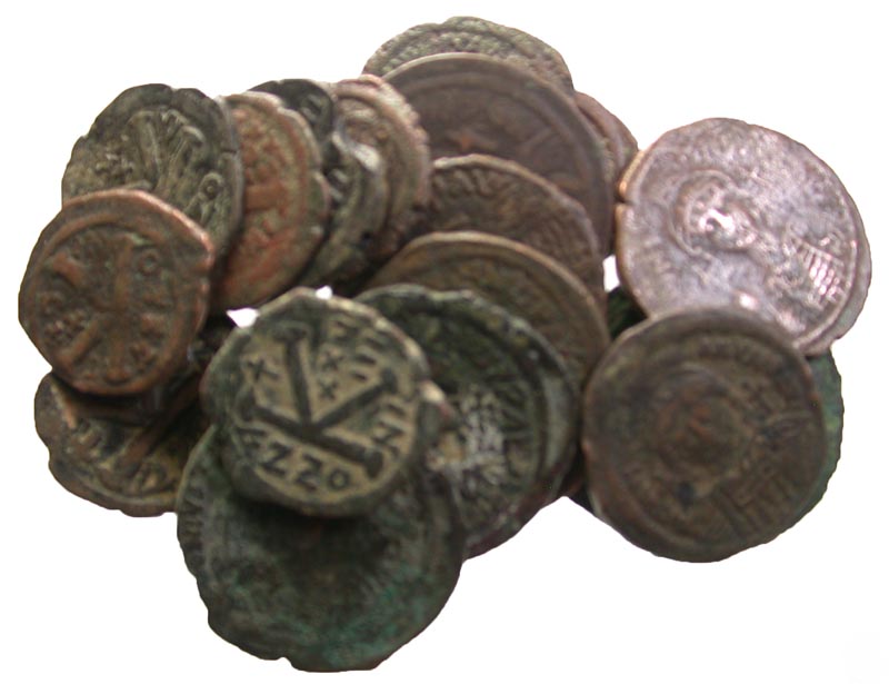 Lot of 17 Byzantine Coins of Justinian I. Folles and half folles, Different mints and dates. Average Fair to Fine condition.