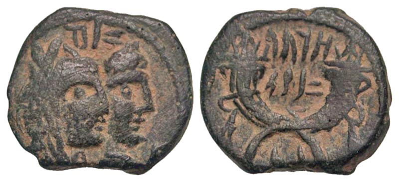 Lot 38-054. Nabataean Kingdom. Aretas IV, with Shuqailat. 9 B.C.-A.D. 40 AE unit. Petra mint, Struck A.D. 20-40.