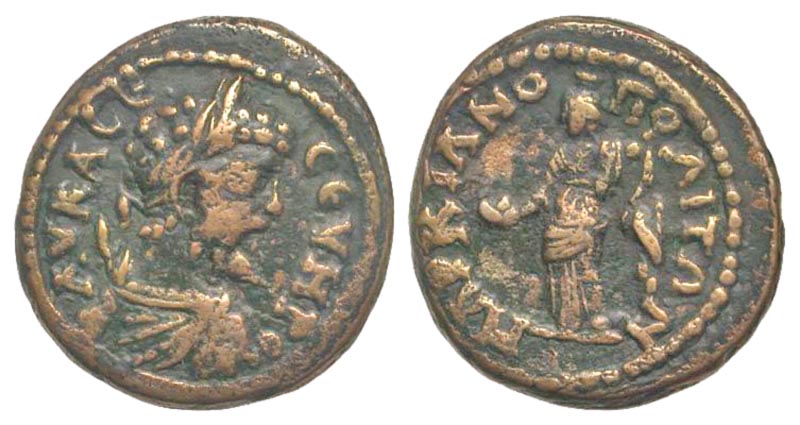 Lot 38-070. Moesia Inferior, Marcianopolis. Septimius Severus. A.D. 193-211. AE assarion. Ex George Spradling collection.