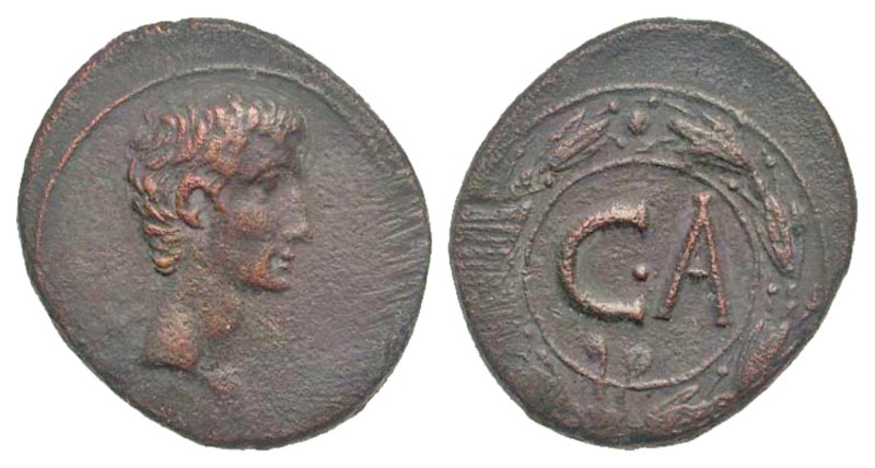 Syria, Seleucis and Pieria. Antiochia ad Orontem (?). Augustus. 27 B.C.-A.D. 14 AE as (26.5 mm, 9.74 g, 12 h). Struck circa 27-5 B.C. Bare head right / C·A, within wreath. RPC 4103 (uncertain Syrian mint); Butcher 40 (probably Antioch); McAlee 194(b) (Antioch). VF, scratches.