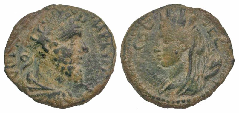 Lot 38-104. Syria, Coele-Syria. Heliopolis. Septimius Severus. A.D. 193-211. AE 25. Ex George Spradling collection.