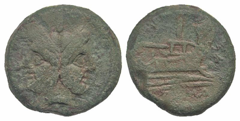 Anonymous. After 211 B.C. AE as (33.4 mm, 30.26 g, 11 h). Rome mint. Laureate head of Janus; above, I / ROMA in exergue, prow of galley right; above, I. Crawford 56/2; Sydenham 143. Fine, rough.