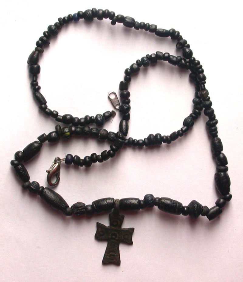 Lot 38-350. Late Roman Black Bead Necklace, with Bronze Cross. 3rd-5th Centuries A.D.