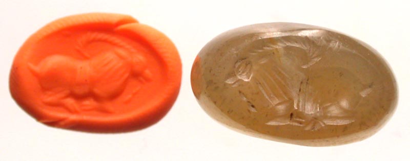 Lot 38-370. Chalcedony Sasanian Dome Seal, 400-600 A.D. Ibex.