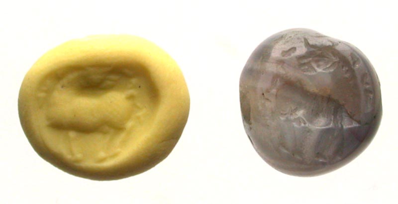 Lot 38-371. Banded Agate Sasanian Dome Seal, 400-600 A.D. Horse.