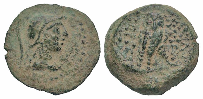 Lot 39-039. Seleukid Kingdom. Antiochos VII Euergetes. 138-129 B.C. AE 17. Probably Ake-Ptolemaïs mint. From the Kenneth Miller Collection of Ake-Ptolemaïs and Related Biblical Coins.