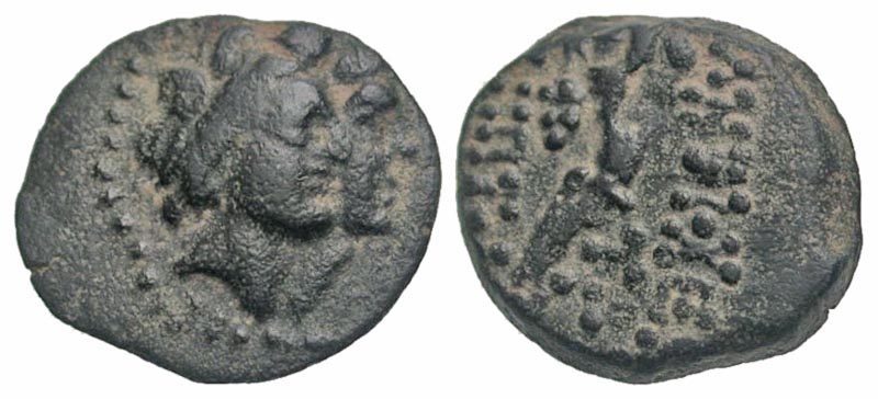 Lot 39-040. Phoenicia, Ake-Ptolemaïs. Time of Antiochos IV, 175-164 B.C. AE dilepton. Barbarous Imitation. From the Kenneth Miller Collection of Ake-Ptolemaïs and Related Biblical Coins.