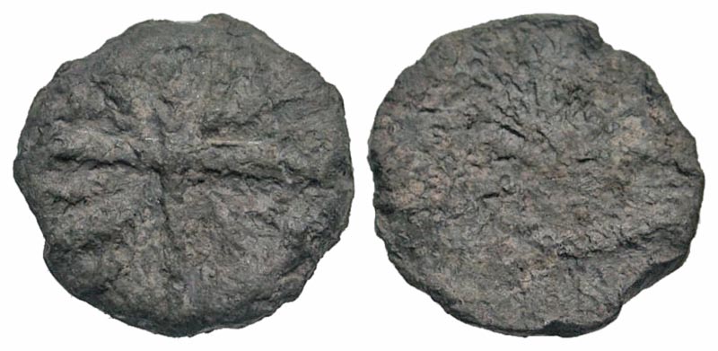 Crusader States. 11th-13th centuries PB token (16.72 mm, 2.64 g). Acre mint(?). Stylized cross / Blank. Cf. Metcalf pp. 306-7 with illus., and nos. 1229-30; cf. Rahmani & Spaer, INJ 3 (1965/6), 73. VF, Found in Acre. Rare.