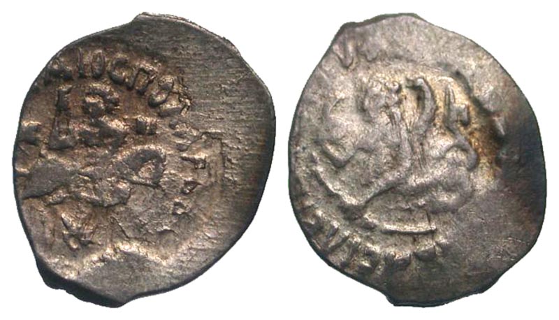 Russia, Principality of Moscow. Vasily Vasilievich, the blind. second reign, 1425-1446. AR denga (13.1 mm, 0.53 g, 6 h). Scarce type. Horseman / Siren to left. Or 625; Sp 57.9. aVF.