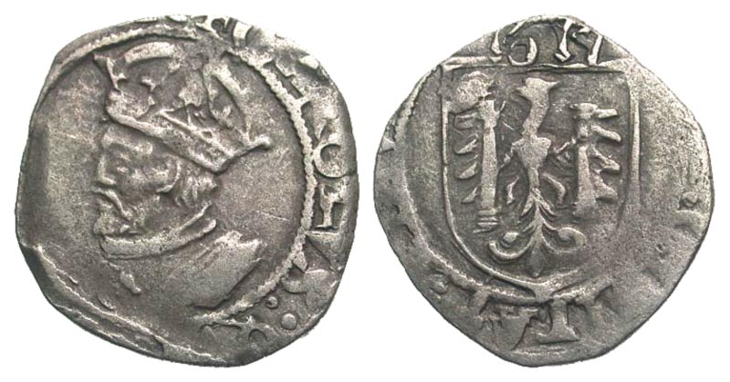 France, Besançon. Charles V, of Spain. 1500-1556. AR 1/2 Batzen (18.7 mm, 1.47 g, 1 h). 1617. +CAROLVS. V IMPERATOR, laureate, draped and cuirassed bust left, wearing order / +MONETA. CIV. IMP. BISONT, 1617, arms bearing heraldic eagle, head left, and supporting pillars of Hercules. KM 10. aVF, clipped.