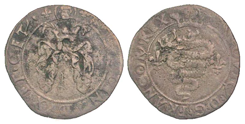 Italian States, Milan. Louis XII of France. 1500-1513. AR bissona (22 mm, 2.11 g, 9 h). Crown draped with cloth / Biscia, lis to sides. CNI 10; Ciani 1015. Fine, black encrustations. Rare.
