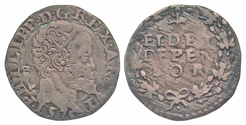 Lot 39-289. Italian States, Naples & Sicily. Filippo II. 1556-1598. AR carlino. 1575-GR VP.