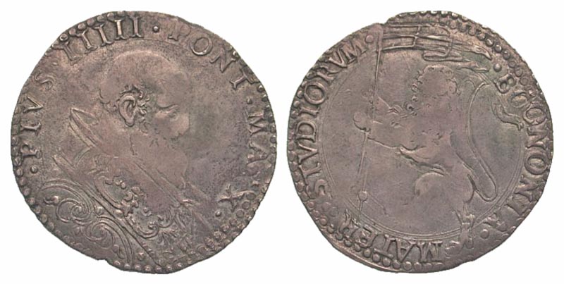 Lot 39-296. Papal States. St. Pius V. 1566-1572. AR bianco. Bologna mint.