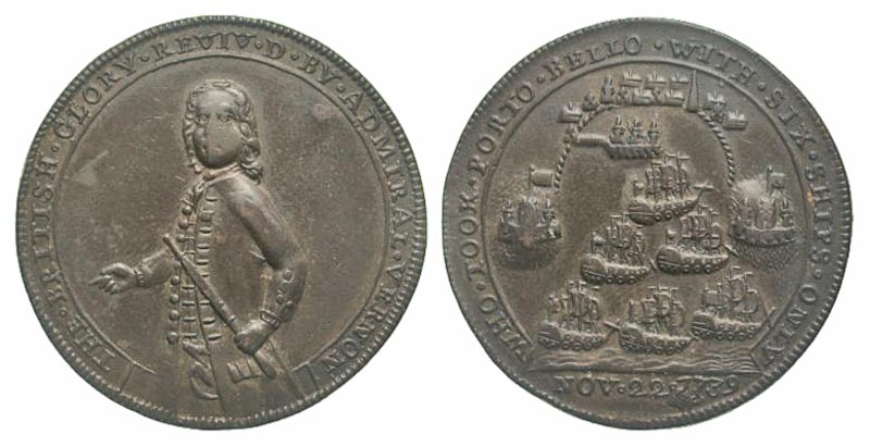 Lot 39-304. Great Britain, Porto Bello. Admiral Edward Vernon. 1684-1757. AE 37 Pinchbeck Brass Medal. Ex DNW 122, lot 1644.