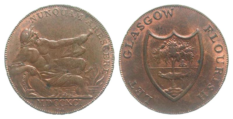 Lot 39-307. Scotland, Lanarkshire. Glasgow. 1791. AE 1/2 penny token.