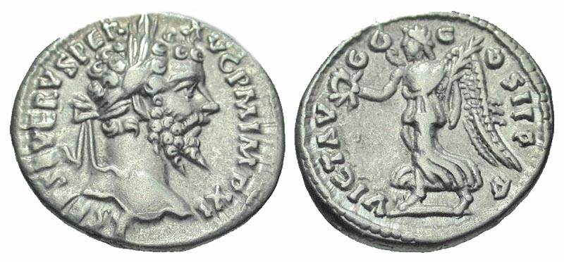Lot 40-142. Septimius Severus. A.D. 193-211. AR denarius. Laodicea mint, Struck A.D. 198. Scarce.