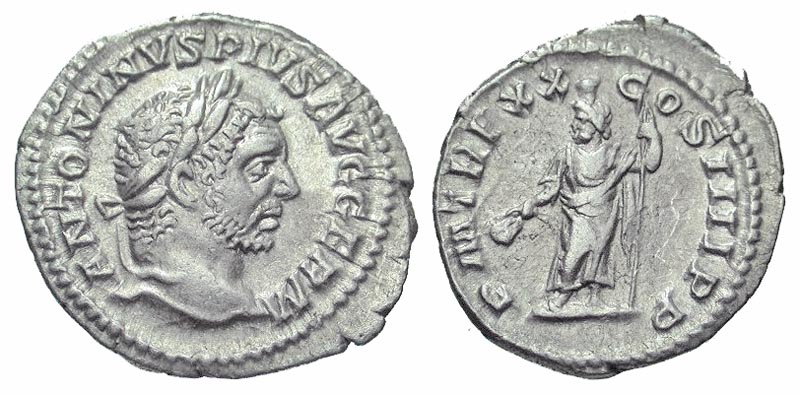 Lot 40-145. Caracalla. A.D. 198-217. AR denarius. Rome mint, Struck A.D. 217.