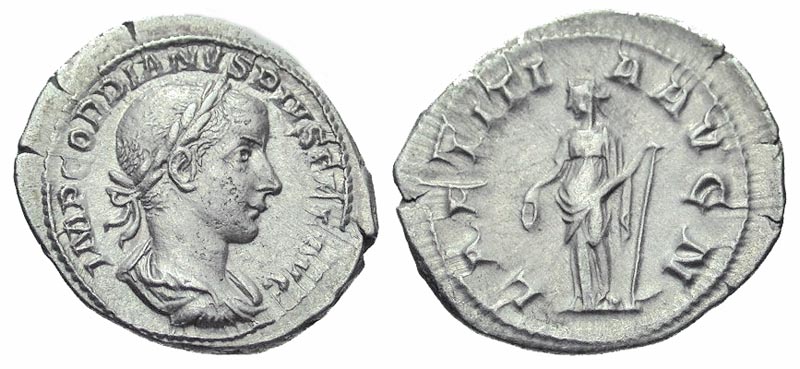Lot 40-158. Gordian III. A.D. 238-244. AR denarius. Rome mint, Struck A.D. 241-243.