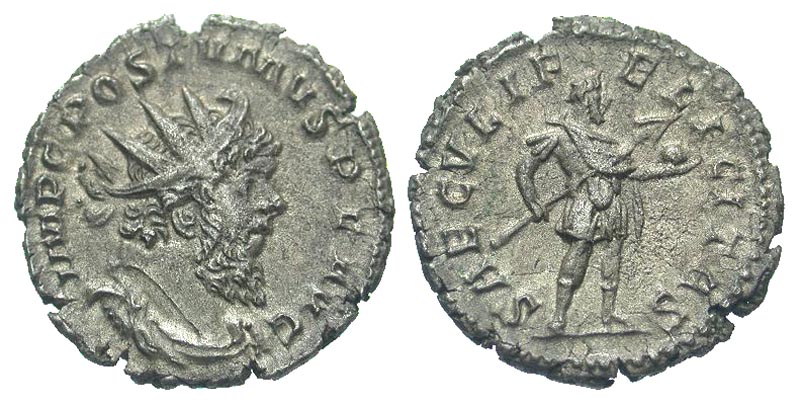 Lot 40-161. Postumus. Romano-Gallic Emperor, A.D. 260-269. AR antoninianus. Treveri mint, Struck A.D. 266-267.