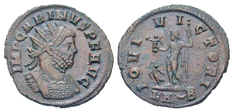 Carinus. A.D. 283-285. AE antoninianus (21.6 mm, 2.56 g, 11 h). Rome mint, Struck A.D. 285. IMP CARINVS PF AVG, radiate and cuirassed bust right / IOVI VICTORI, Jupiter standing left, holding Victory and scepter, eagle at his feet left; KA crescent B in exergue. RIC 258; Pink 39. VF.