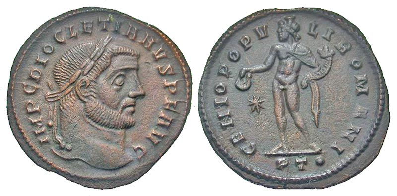 Lot 40-166. Diocletian. A.D. 284-305. AE follis. Ticinum mint, Struck A.D. 298-299.
