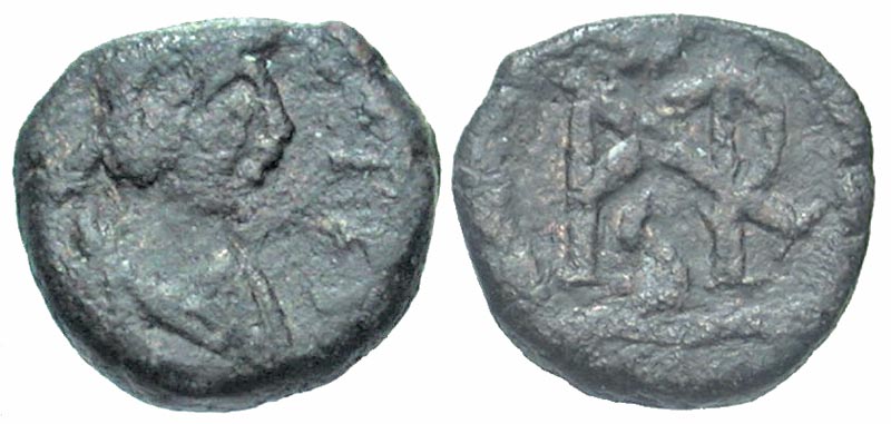 Vandals. Pseudo-Imperial coinage. Ca. 440-ca. 490. AE 10 nummi (9.4 mm, 0.93 g, 12 h). Carthage mint, Struck under Gaiseric or Huneric. In the name of Marcian. Rare. Pearl-diademed, draped, and cuirassed bust right / Monogram of Marcian. MEC -; BMC Vandals 102-4. Fine, brown patina. Ex J. P. Righetti Collection, 1235; Ex CNG 288, lot 600.