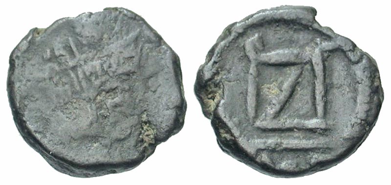 Vandals. Pseudo-Imperial coinage in the name of Zeno. Ca. 474-ca. 491. 10.0 mm, 0.93 g, 12 h). Diademed and draped bust right / Monogram of Zeno. BMC 127. Fine.