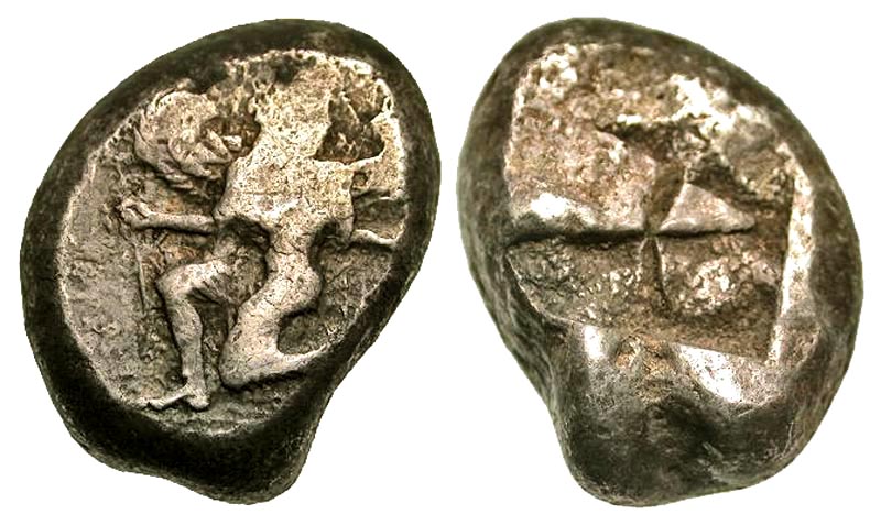 CARIA. Kaunos. 480-410 BC. AR Stater (11.43 gm). Winged female running with caduceus and wreath / Conical baetyl. Konuk.79. SNG.Keck.822. Toned Fine+.
