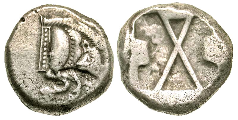 LYCIA. Pre-Dynastic issue, 520-470 BC. AR Stater (8.81 gm). Forepart of boar right / Incuse square, three sides with lugs, large X at center. Falghera.33. SNG.vAul.4154. Toned VF+. Rare.