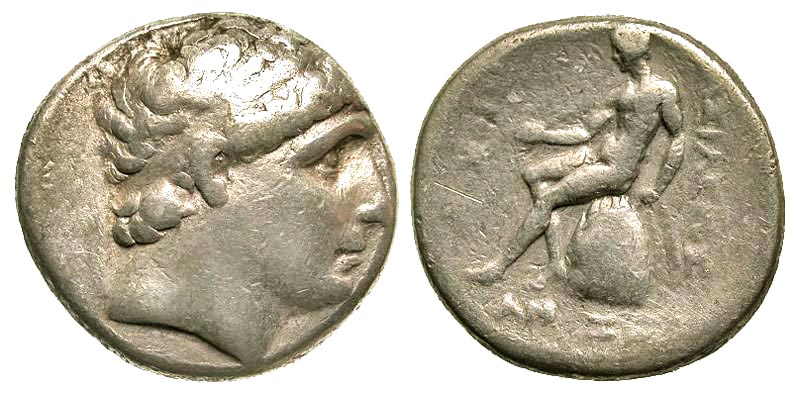 SELEUKID KINGDOM. Antiochos II, 261-246 BC. AR Tetradrachm (16.81 gm) of Sardes. Diademed head / Apollo seated on omphalos, holding arrow and bow. Newell.1385. Pozzi.2936. aVF.
