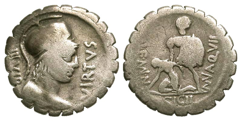 Lot 41-178. ROMAN REPUBLIC. Mn. Aquillius Mn. f. Mn.n., 71 BC. AR Denarius
