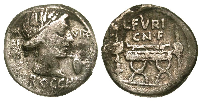 Lot 41-180. ROMAN REPUBLIC. L. Furius Cn. f. Brocchus, 63 BC. AR fourrée Denarius