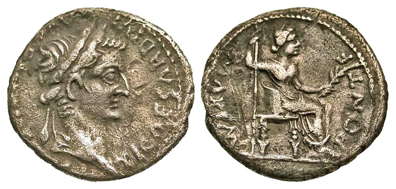 TIBERIUS, 14-37 AD. AR Denarius (3.38 gm) Lugdunum. Laureate head / Livia, as Pax, seated holding sceptre and olive-branch. RIC.30. Toned VF.