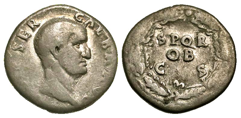 GALBA, 68-69 AD. AR Denarius (3.10 gm). Bare head right / Legend within wreath. RIC.167(R). S.2109. Toned Fine. Rare.