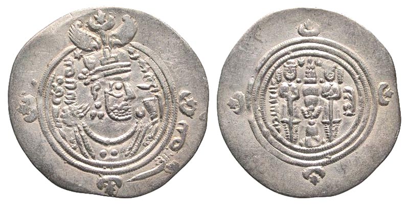 Lot 42-040. Sasanian Kingdom. Khusru II. A.D. 591-628. AR drachm. ST (Stakhr) mint, dated RY 29.