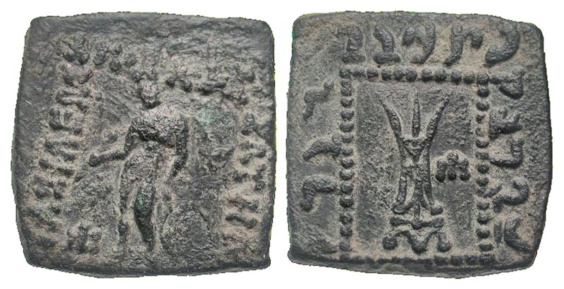 Lot 42-047. Graeco-Baktrian Kingdom. Apollodotos I. Ca. 174-165 B.C. AE hemiobol.