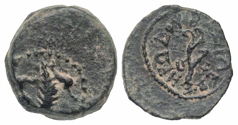 Lot 42-051. Judaea, Herodian Kingdom. Herod I. 40 B.C.E.-4 B.C.E. AE prutah. Mint in Samaria, Dated year 3 = 38/37 BCE. Ex Amphora Coins.