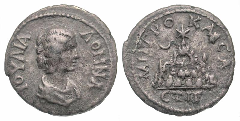 Lot 42-078. Cappadocia, Caesarea. Julia Domna. Augusta, A.D. 193-217. AR drachm. Dated RY 13 = A.D. 205. Rare, possibly unpublished.