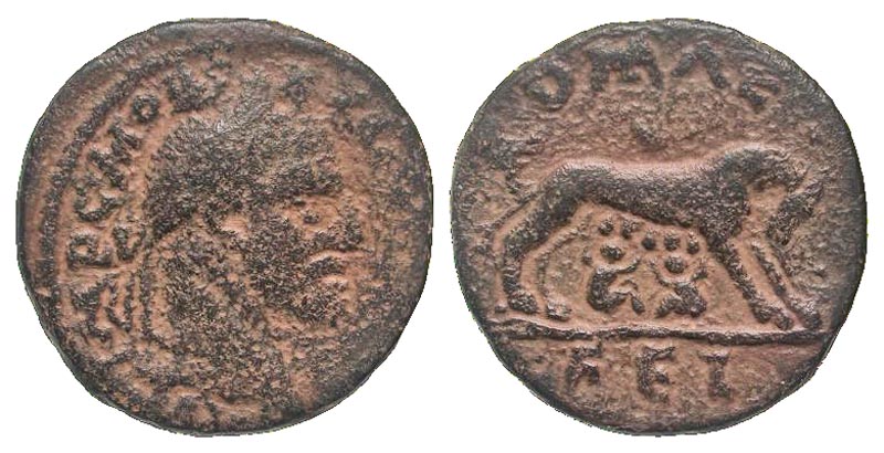 Syria, Seleucis and Pieria. Laodicea ad Mare. Macrinus. A.D. 217-218. AE 28 (27.6 mm, 13.54 g, 12 h). IMP C M OP SEVE MACRINVS AVG, laureate head right / ROMAE FEL, she-wolf standing right, head turned back, suckling the twins Romulus and Remus. BMC 97; L&K 2097; SNG Cop -. VF, red patina.