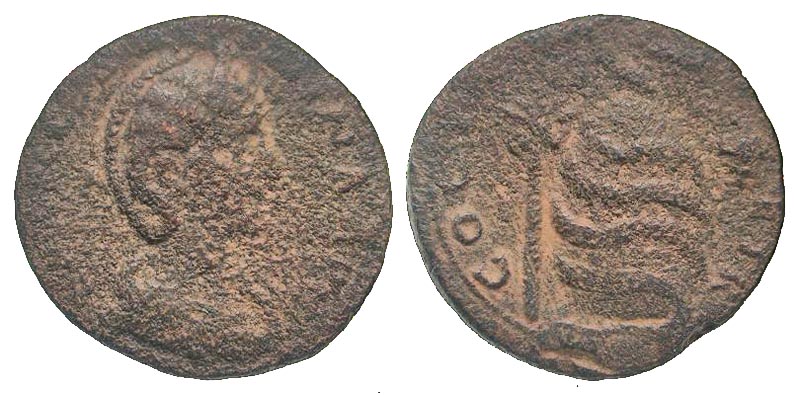 Phoenicia, Tyre. Salonina. Augusta, A.D. 254-268. AE 27 (27.2 mm, 11.21 g, 6 h). CORNE SALONINA AVG, draped bust right / COL TVRO METR, serpent-entwined baetyl; murex shell to left, palm tree to right. Rouvier -; BMC -; SNG Cop -. F/VF, porous. Very Rare. Ex Amphora Coins.