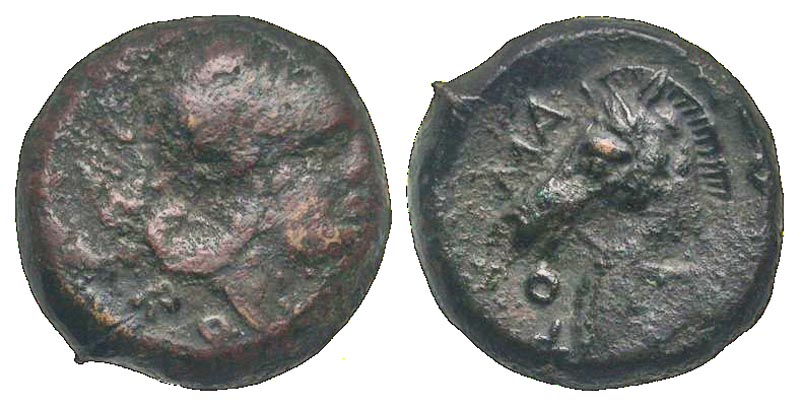 Anonymous. ca. 260 B.C. AE litra (18.4 mm, 5.80 g, 9 h). Rome mint. RO[MANO], Helmeted head of Minerva right; star to left / ROMANO, horseï¾s head left. Crawford 17/1g; Sydenham 3b; HN Italy 278. aVF, pitted obverse, black patina.
