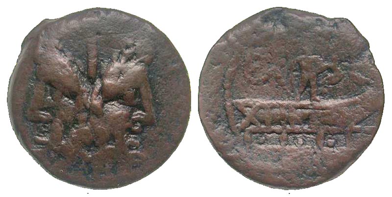 C. Licinius L.f. Macer. 84 B.C. AE as (26.7 mm, 14.16 g, 1 h). Semuncial standard. Rome mint. Laurete head of Janus, I above / EX - S·C, prow of galley left, male figure holding staff standing on prow. Crawford 354/3b; Sydenham 734. Fine, brown patina.