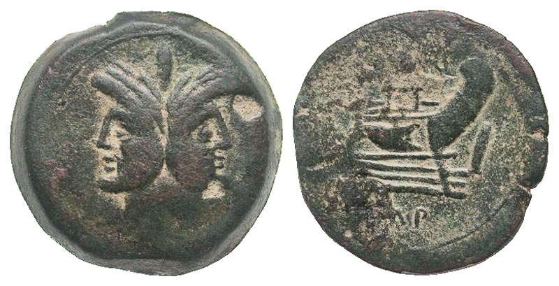 Lot 42-140. Cnaeus Pompey Jr. 46-45 B.C. AE as. Uncial standard. Corduba mint. Very Rare. Ex RBW collection (not in previous sales).