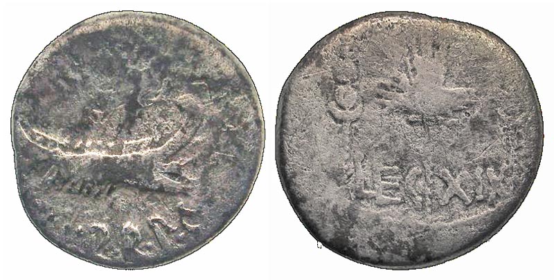 Lot 42-144. Mark Antony. 32-31 B.C. AR denarius. Patrae(?) mint.